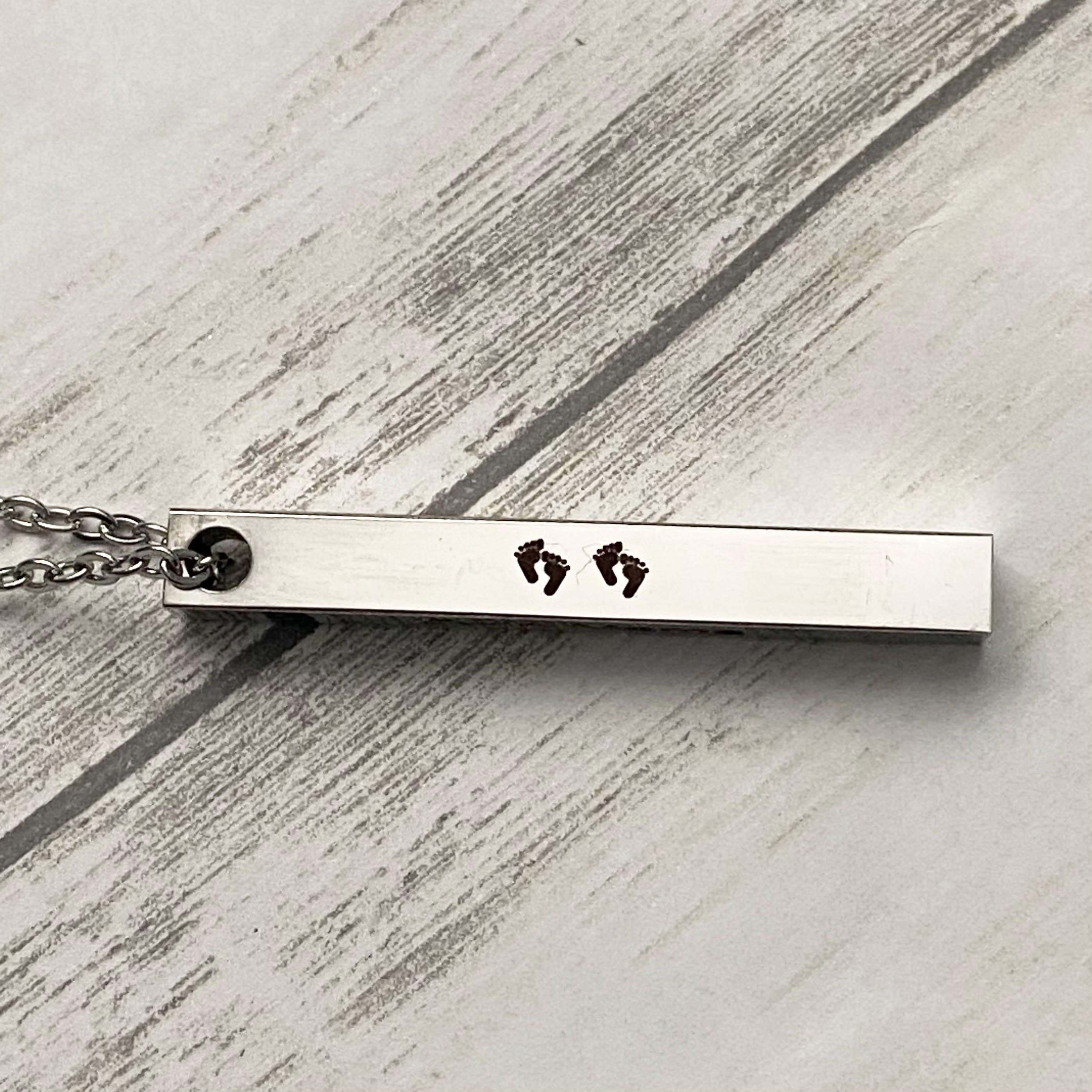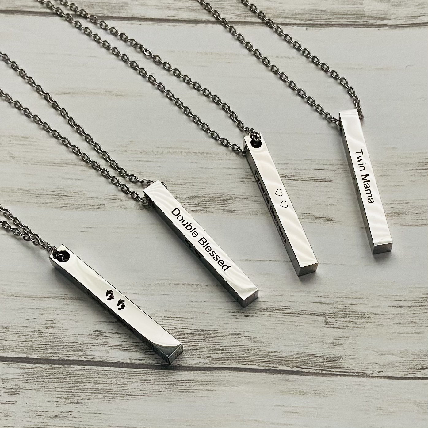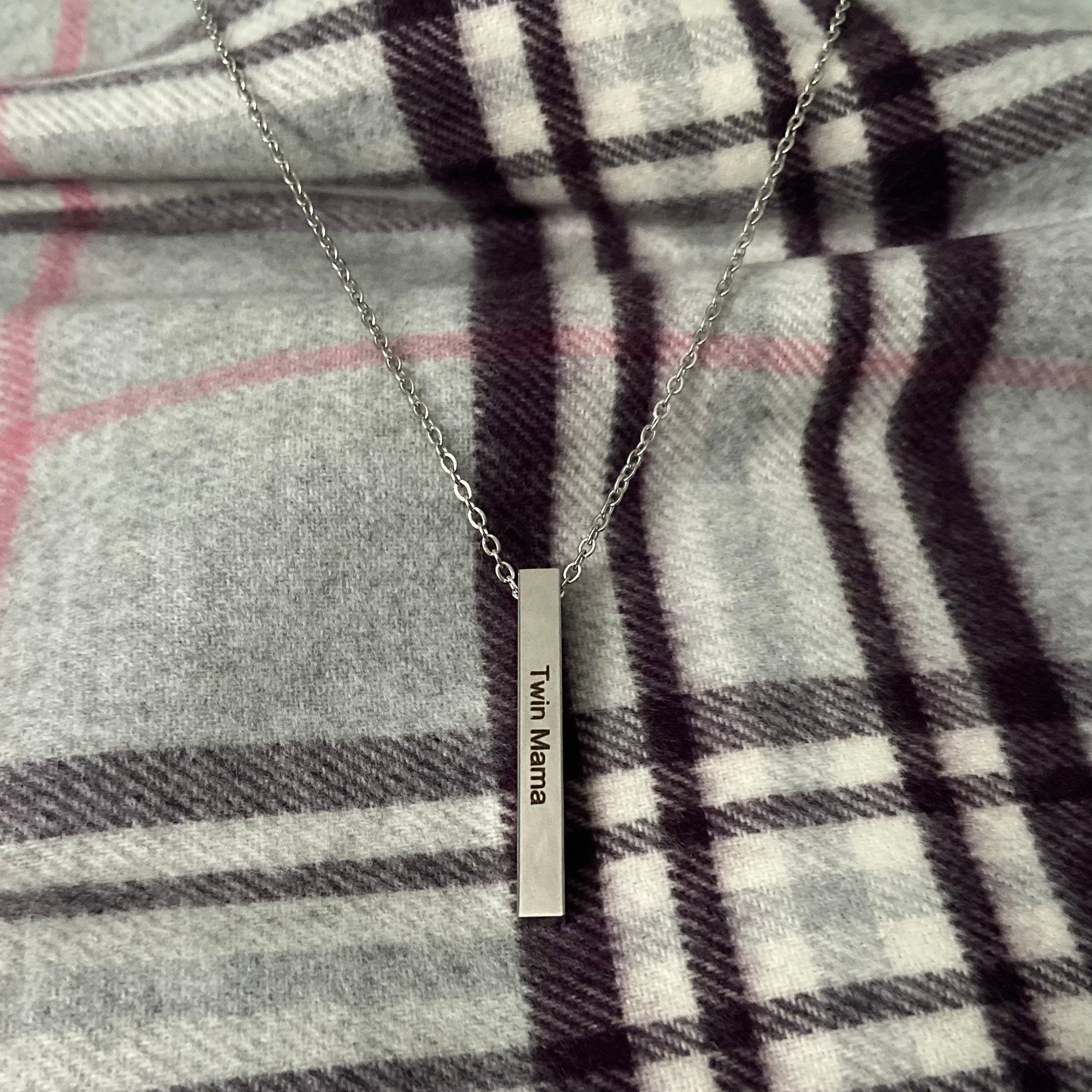 Twin Mama Silver Stainless Steel Pendant Necklace - 4 Sided